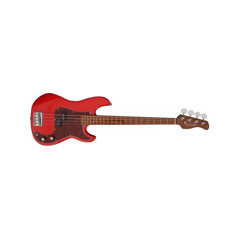 Corps en Aulne d'Amérique du nord, forme du corps: Precision bass type, manche en érable torréfie dur, forme en C, Diapason: 34", Touche en rable dur torréfié (Radius : 9'5"), Frets: 2,4 medium, Sillet:42mm en os, Incrustations noires, Ensemble de capteurs Marcus Vintage-Precision Set, Contrôles Volume et tonalité, Chevalet : Marcus vintage-S, Mécanique: Premium Open gear (Chrome), Boutons : Chrome metal, Pickguard : Tortoise, Finition Dakota Red