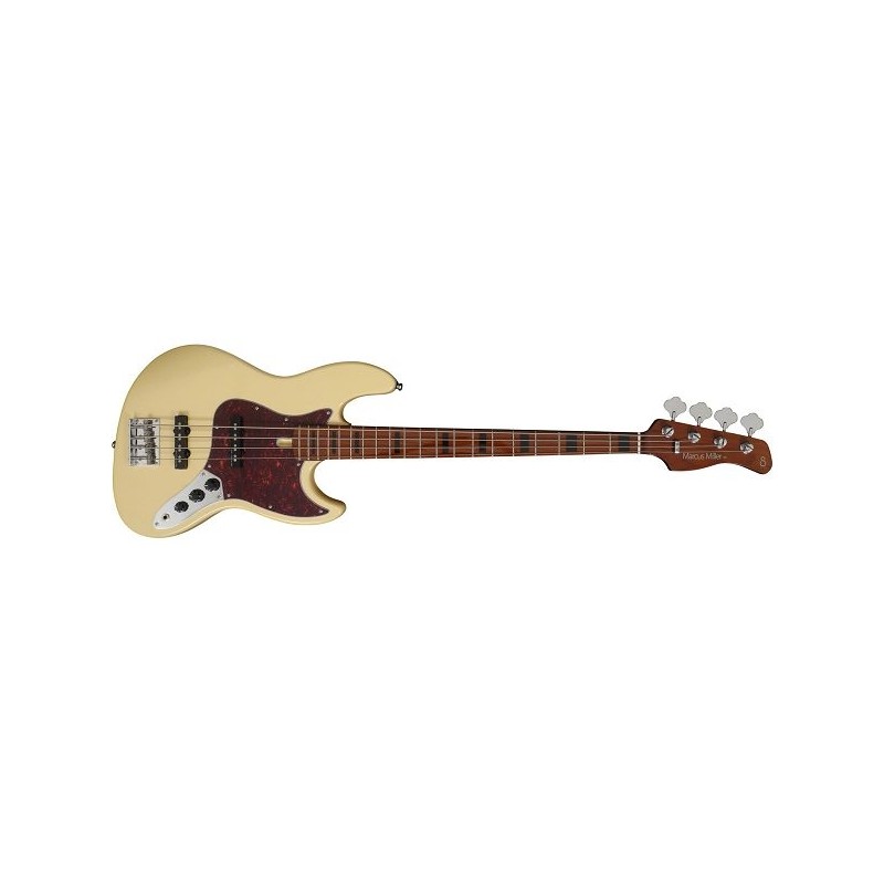 Corps en Aulne d'Amérique du nord, forme du corps: New Marcus Jazz type, manche en érable dur torréfié , forme en C, Diapason: 35", Touche en rable dur torréfié (Radius : 9'5"), Frets: 2,4 medium, Sillet:38mm, Binding: finition noire, Incrustations noires, Ensemble de capteurs Vintage-J Revolution Set, Pré-ampli: Volume passif et contrôle de tonailté, Contrôles : Volume(Neck PU), Volume(Bridge PU), Tone(Master), Chevalet : Marcus vintage-S, Mécanique: Apparente deluxe (Chrome), Boutons : Noirs Jazz, Pickguard : Noir, 4.30kg, Finition Vintage White