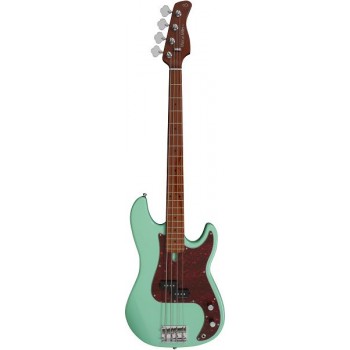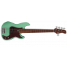 Corps en Aulne d'Amérique du nord, forme du corps: Precision bass type, manche en érable torréfie dur, forme en C, Diapason: 34", Touche en Érable dur torréfié (Radius : 9'5"), Frets: 2,4 medium, Sillet:47,6 mm en os, Incrustations noires, Ensemble de capteurs Marcus Vintage-Precision Set, Contrôles Volume et tonalité, Chevalet : Marcus vintage-S, Mécanique: Premium Open gear (Chrome), Boutons : Chrome metal, Pickguard : Tortoise, Finition Mild Green