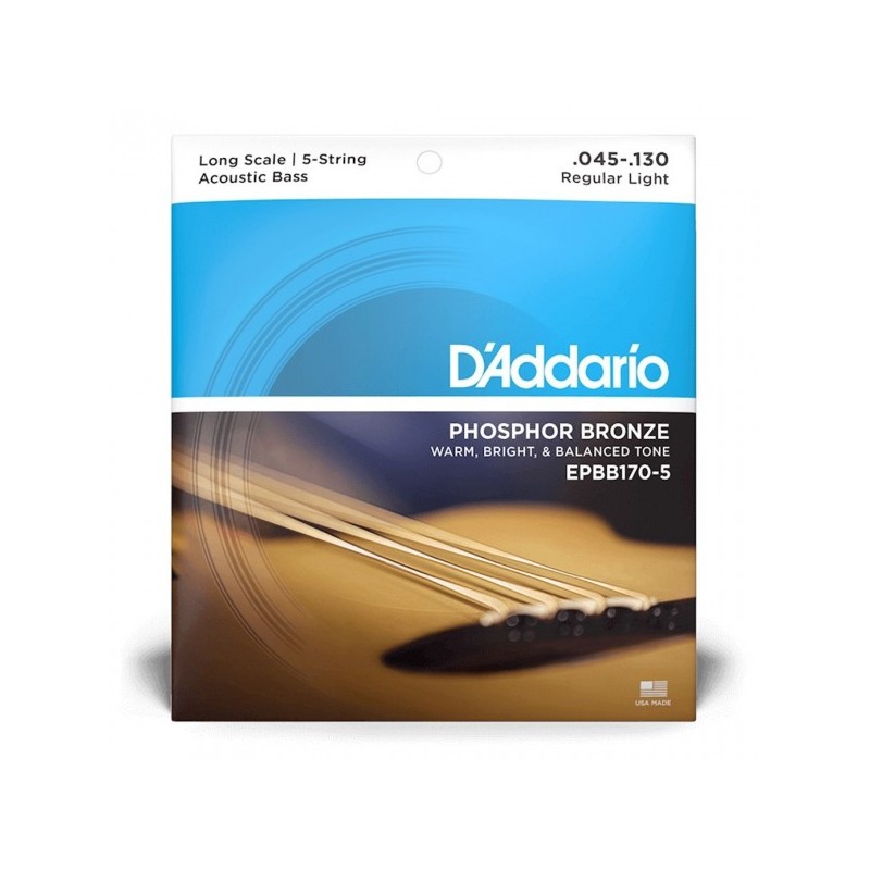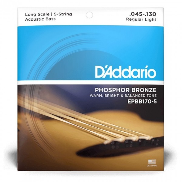 D'ADDARIO EPBB170-5 D'Addario Cordes en bronze phosphoreux pour basse acoustique 5 cordes D'Addario EPBB170-5, cordes longues, 4
