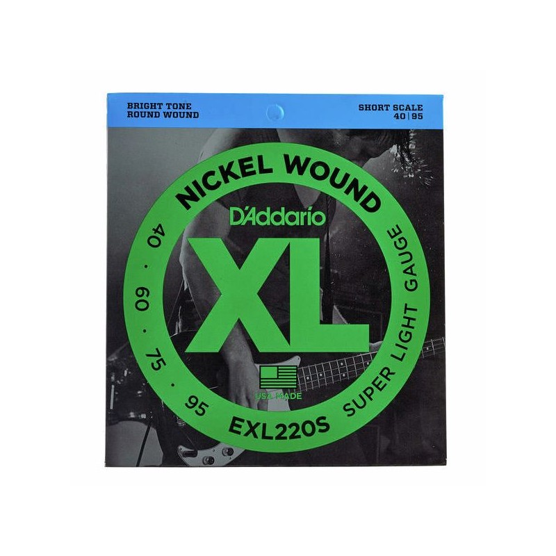 D'ADDARIO EXL220S D'Addario Cordes en nickel pour basse D'Addario EXL220S, Super Light, 40-95, cordes courtes