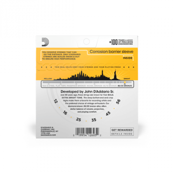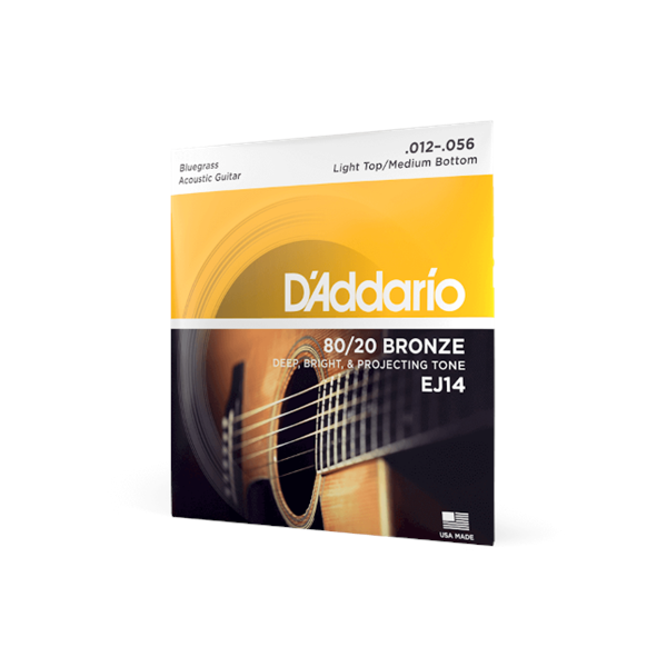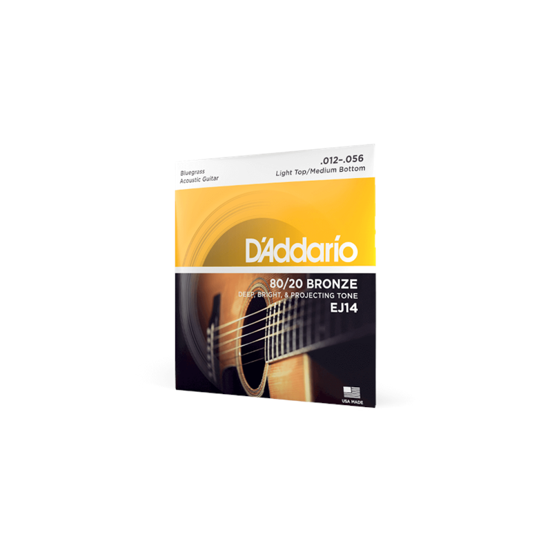D'ADDARIO EJ14 D'Addario Cordes en bronze pour guitare acoustique avec revêtement D'Addario EJ14, 80/20, Light Top/Medium Bottom