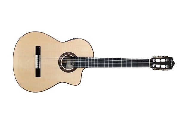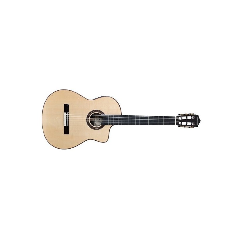 Guitare classique/Flamenca au format 4/4 Cutaway, Table en épicéa massif, dos et eclisses Palissandre, largeur de sillet 50mm, Diapason 650mm,Finition brillante
