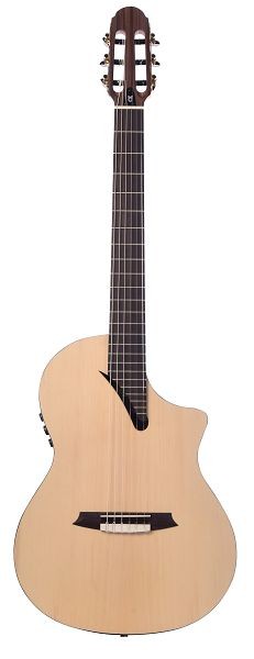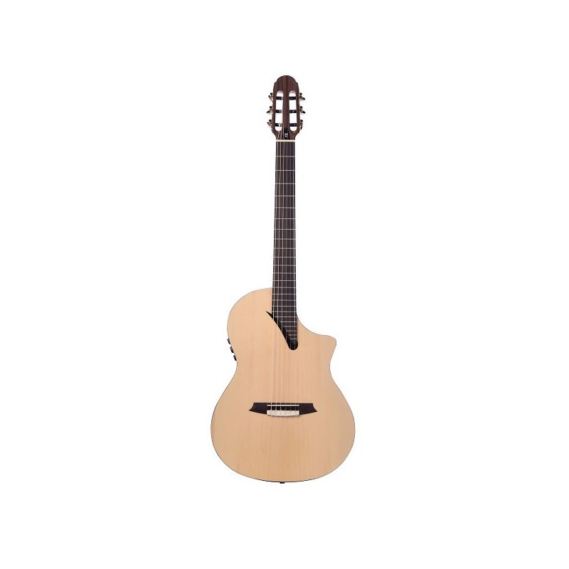 Guitare classique au format 4/4 table en Epicea Massif, dos et eclisses Palissandre, largeur de sillet 48mm, Diapason 650mm, Cutaway, Pre-ampli Martinez T4, Finition Naturel Satiné
