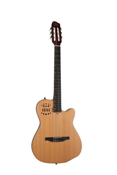 L’ACS-SA Slim allie les caracteristiques des guitares classiques à celles des guitares Solid Body. Dotee d’un manche incroyablement confortable et d’une caisse en erable avec un table en cedre massif, la Mutliac ACS Slim constitue notre modele nylon d’entree de gamme equipee à fonction acces synthe MIDI. Bien que la caisse soit munie de chambres acoustiques, l’epaisse table d’harmonie en erable utilisee se rapproche davantage des modeles Solid Body, plutot que des instruments de type traditionnel. Cette conception a engendre un instrument pratiquement exempt de tout risque de Larsen, le rendant ainsi davantage utilisable sur scene. L’ACS Slim est equipee de capteurs individuels associes à un preamplificateur specialement conçu par RMC. Non seulement ce systeme produit un superbe son amplifie, mais il est dote d’une sortie hexaphonique et d’une prise 13 broches permettant un acces direct aux synthetiseurs de guitares de la Serie GR de Roland. Manche Acajou Radius 16'', Diapason 64.77cm, Touche Richlite 22 frets, Sillet Graphtech 43,2mm, Mecanique 16:1, jeu de cordes HTC Nylon (.0285,>.0327,.0410,.030,.036,.044), Finition Naturel Semi-gloss, livree en housse