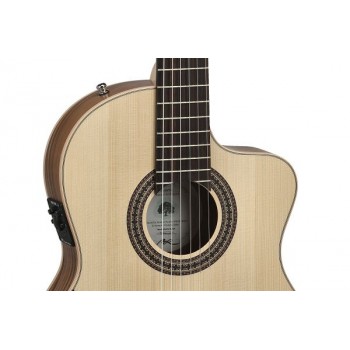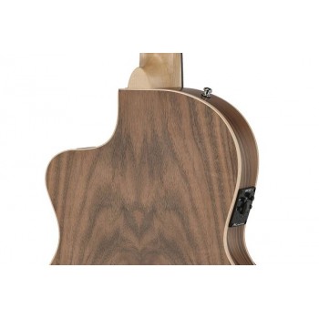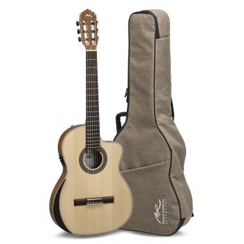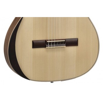 BODY text=#000000 bgColor=#ffffff Manuel Rodrguez ECOLOGA SAMBA Cutaway, électro-acoustique,/nbsp;4/4 Diapason 650mm/25.59", largeur au sillet 48mm/1.89" Touche bombé en acacia Table massive/nbsp;en épicéa européen Dos et éclisses en/nbsp;noyer/nbsp;laminé Binding en bois véritable Manche en érable Connexion entre le manche et le corps en/nbsp;queue d'aronde Insert de tête en noyer Insert de chevalet et sillet en Bonoïd Chevalet traditionnel à 6 trous en acacia Mosaïque de la rosace en bois Vernis écologique à base d'eau micro-poreux, satiné mat Security Locks montés Repose-bras/nbsp;GEWA monté en atelier Equipement électro-acoustique: Préampli avec équaliseur 3 bandes ARTEC SQ-3 pour Manuel Rodrguez avec le capteur au chevalet Solidflex, qui associe les atouts des capteurs à câble flexible à la puissance des piézos classiques Réglage: volume, basses (100Hz), médium (800Hz), haut (4kHz) Interrupteur: Phase Reverse (Anti-Feedback). Le tuner coupe le signal de sortie, il fonctionne même si aucun jack n'est inséré dans la prise de sortie. Attention: le tuner ne s'éteint pas automatiquement! Mécanique sans lyre, nickelée avec boutons et tiges noirs Cordes: Hannabach 600MT, tension médium, fabriquées en Allemagne Inclus: housse 213.100MR, courroie en cuir 531.618, Security Locks 555.111 Ecologa Samba Plano/nbsp;"Electric Neck" Manche étroit en 48mm au sillet/nbsp;avec truss rod biflex Cutaway, électro-acoustique,/nbsp;65mm/2.56"/nbsp;corps/nbsp;plat /nbsp;Afficher moins /nbsp;