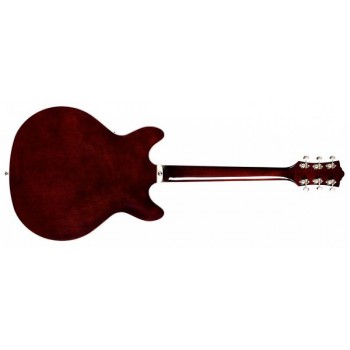 S'appuyant sur la forme double cutaway rendue célèbre par les Starfire IV, V et VI, la Starfire I DC a un corps semi-hollow body utilisant un bloc central en acajou la réduction du larsen et un plus grand sustain. Le Starfire I DC conserve le ton aéré et net que vous attendez d'une semi-hollowbody. La Starfire I DC Cherry a une table, un dos et des éclisses en acajou élégamment ceintrés. Le diapason de 24 3/4 ”et le profil de manche en U mince et moderne, permettent un jeu rapide et fluide et l'articulation manche / corps à la 18e frette permet un accès facile aux aigus de la touche. Les mécaniques Premium Guild Vintage 18 avec leur rapport de démultiplication de 18: 1 et le chevalet Tune-o-matic garantissent la tenue de l'accord et une stabilité harmonique. Les micros humbuckers HB-2 Alnico II de Guild apportent une sonorité Vintage riche et la commutation en simple bobinage par le push-pull est possible à partir de l'un ou l'autre micro. Toutes ces fonctionnalités sont fournies en standard dans la série Starfire I. Finition Vintage Walnut
