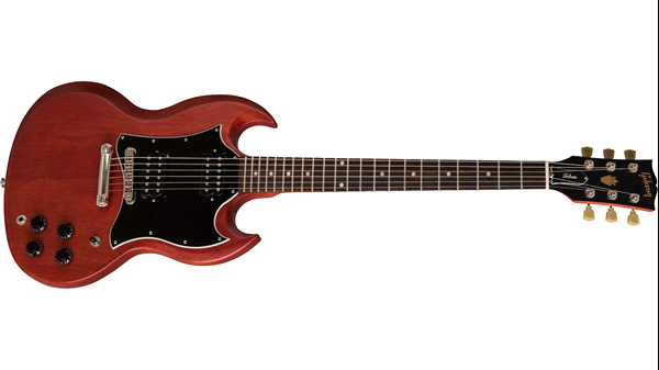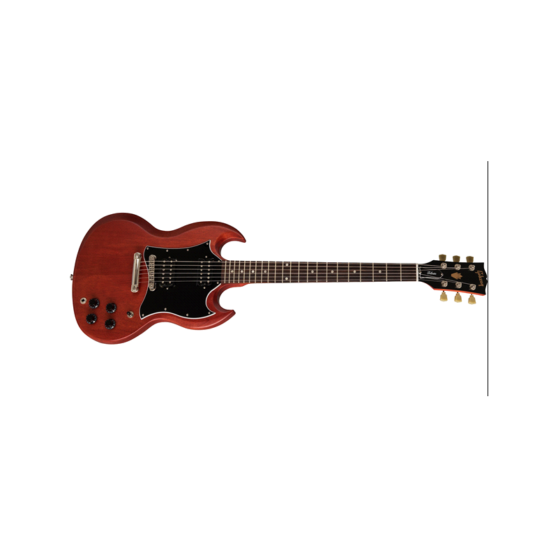 Disponible en satin cherry vintage et satin noyer naturel, le SG Standard Tribute possède un corps en acajou traditionnel et un manche en érable à profil arrondi et bois de rose touche. Il est fini avec un pickguard complet noir à 5 épaisseurs chargé de doubles micros noirs à bobines ouvertes, chargés, de type 490R et 490T Alnico II. Matériel plaqué nickel comprend des tuners Vintage Deluxe avec boutons Keystone, un Nashville Tune-O-Matic Chevalet et barre d’arrêt en aluminium.Body Material Mahogany Neck Neck Maple Profile Rounded Nut width 1.695" / 43.05mm Fingerboard Rosewood Scale length 24.75" / 628.65mm Number of frets 22 Nut Graph Tech Inlay Acrylic Dots Hardware Bridge Aluminum Nashville Tune-O-Matic Tailpiece Aluminum Stop Bar Knobs Black Top Hats Plating Nickel Electronics Neck pickup 490R Bridge pickup 490T Controls 2 Volumes, 2 Tones & Toggle Switch Case & SKUs Case Soft Shell Case