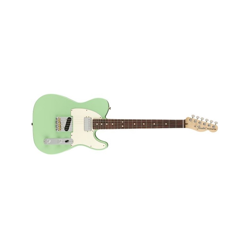 FENDER American Performer Telecaster with Humbucking Rosewood Fingerboard Satin Surf GreenSeries:American PerformerBody Material:AlderBody Finish:Gloss Polyurethane, Satin Polyurethane (357)Neck:Maple, Modern “C”Neck Finish:Satin PolyurethaneFingerboard:Maple or Rosewood, 9.5” (241 mm)Frets:22, JumboPosition Inlays:Black Dots (Maple), White Dots (Rosewood)Nut (Material/Width): Synthetic Bone, 1.685" (42.8 mm)Tuning Machines:Fender ClassicGearScale Length:25.5” (648 mm)Bridge:3-Saddle Strings-Thru-Body Tele BridgePickguard:3-Ply Black/White/Black (345), 3-Ply Parchment/Black/Parchment(300, 341, 357)Pickups: Yosemite Single-Coil Telecaster (Bridge), American PerformerDoubleTap Humbucking (Neck)Pickup Switching:3-Position Blade: Position 1. Bridge Pickup, Position 2. Bridge andNeck Pickups, Position 3. Neck PickupControls:Master Volume, Greasebucket Tone Circuit (Rolls off High With-out Adding Bass)Control Knobs:Knurled Flat-TopHardware Finish:Nickel/ChromeStrings:Fender USA 250L, NPS, (.009-.042 Gauges)Case/Gig Bag:Deluxe Gig Bag