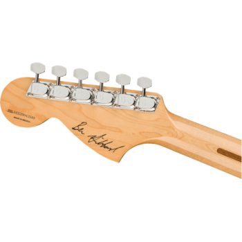 Signature Ben Gibbard (Death Cab For Cutie)Corps chambré en frêneManche en érableTouche en érableProfil du manche: Medium "C"Diapason: 610 mm (24")Rayon de la touche: 9,5"Largeur au sillet: 41 mm (1,625")22 frettes Medium Jumbo2 micros simple bobinage Mustang style VintagePickguard 3 plis noirVibrato Mustang style VintageCouleur: NaturelLivrée en housse Deluxe