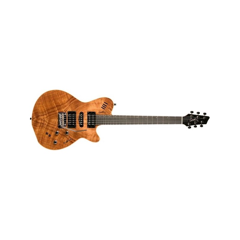 Elle fait tout et elle maitrise tout. L’incroyable puissance sonore de la xtSA est due à ses trois voix distinctes : guitare electrique, acoustique et synthe. La xtSA offre des sonorites electriques intenses avec sa configuration de micros GODIN humbucker-simple-humbucker et par l’entremise d’un selecteur à cinq positions qui va des tonalites musclees humbucker aux sonorites plus claires dans les seconde et quatrieme positions. eteignez la sortie electrique et montez le volume des capteurs RMC pour transformer la xtSA en guitare acoustique avec une sonorite incroyablement authentique. La voix acoustique de la xtSA est rehaussee par un preamplificateur integre et un correcteur graphique à trois bandes. La configuration des deux sorties fait en sorte que les voix electrique et acoustique peuvent etre mixees à meme la guitare dans l’amplificateur ou dans la table de mixage en utilisant les deux sorties. De plus, la xtSA possede un capteur synthe qui, tout simplement, est le meilleur de l’industrie. Comme sur tous les instruments midi de Godin, un connecteur synthe integre à 13 broches donne un acces direct à tous les synthes de la serie GR de Roland et à la plupart des à appareils à 13 broches. Cette puissance sonore serait beaucoup moins interessante si cette guitare n’etait pas confortable. Mais avec un diapason de 64.7 cm et un manche en acajou 22 frets (comme celui utilise sur la LGX-SA de Godin), la xtSA est resolument confortable. La touche en Richlite a ete conçue selon la technique ergocut de GODIN et est equipee de frettes jumbo. La caisse est faite en coeur de peuplier et une table en Koa selection premier choix. Micro Manche Custom GODIN humbucker, Micro milieu GODIN single coil, Micro chevalet GODIN Custom Humbucker, Sillet graphtech 42.8mm, Mecanique 18:1, Cordes E10 (.010, .013,.017,.026,.036,.046) Finition Light flame High Gloss, livree en housse