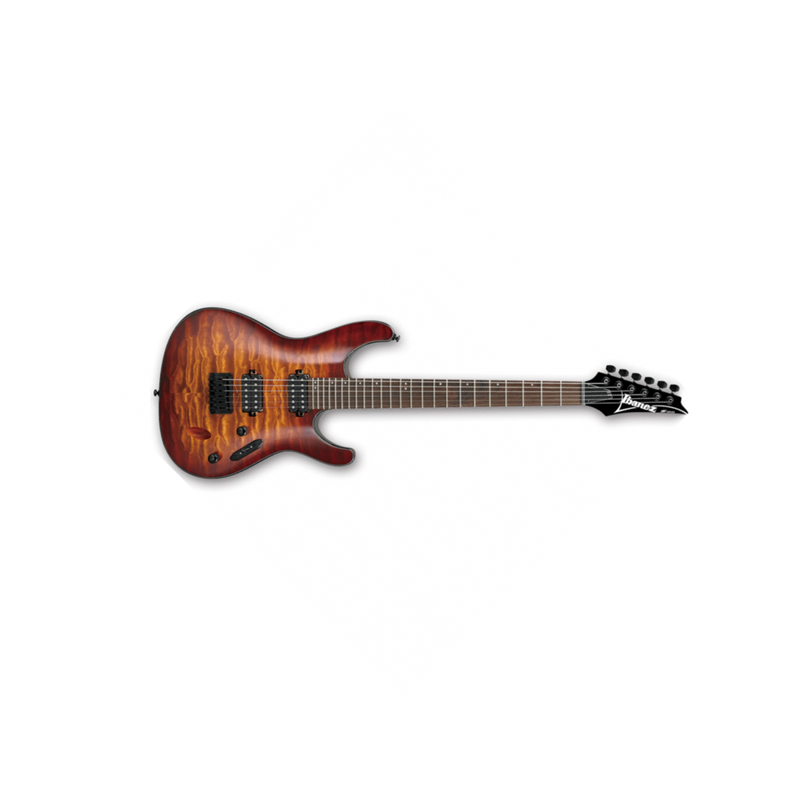 Découvrez la IBANEZ S621QM DEB Dragon Eye Burst, une guitare électrique moderne conçue pour les adeptes de musique Metal. Sa finition Dragon Eye Burst attire immédiatement l'œil, tandis que ses spécifications techniques impressionnantes garantissent une performance sonore exceptionnelle. Conçue pour les guitaristes exigeants, cette guitare allie esthétique et puissance sonore pour offrir une expérience musicale inégalée. Caractéristiques techniques : Corps : Acajou avec table en érable pommelé pour une résonance optimale et un look captivant. Manche : Manche vissé en érable, profil Wizard III, offrant une jouabilité fluide et rapide. Touche : Palissandre avec 24 frettes Jumbo pour une grande précision dans les notes aiguës. Micros : Configuration H-H avec deux micros Quantum pour des sonorités puissantes et claires, idéales pour le Metal. Chevalet : Chevalet fixe pour une stabilité d'accordage exceptionnelle même lors des sessions les plus intenses. Accastillage : Finition en nickel noir pour une allure moderne et agressive. Dimensions : Longueur totale de 99 cm, largeur de 32 cm, épaisseur de 4,3 cm. Poids : Environ 3,2 kg, parfaitement équilibrée pour un confort de jeu prolongé. Avantages : Polyvalence : Grâce à sa configuration de micros, cette guitare offre une large palette sonore, du clean limpide aux saturations les plus lourdes. Confort de jeu : Le profil de manche Wizard III est conçu pour des performances rapides et techniques, réduisant la fatigue pendant les longues sessions de jeu. Stabilité : Le chevalet fixe garantit un accordage stable, même lors des changements de cordes fréquents ou des variations de température. Design accrocheur : La finition Dragon Eye Burst en fait un véritable objet de désir pour tout musicien. La IBANEZ S621QM DEB est l'instrument parfait pour les guitaristes modernes à la recherche d'une guitare électrique performante et esthétique. Avec sa sonorité riche et sa conception robuste, elle est prête à vous accompagner sur toutes les scènes. Offrez-vous la puissance et le style que vous méritez, et laissez votre musique briller.