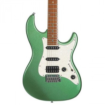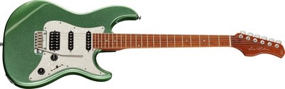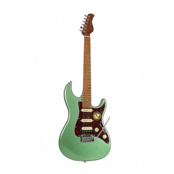 S7 SG Corps en Aulne d'Amérique du nord, Format: Strato, manche en érable massif torréfié, forme en C, diapason: 25'5”, touche en érable massif torréfié (Radius : 9’5”), Frets: 2,7 medium Jumbo, sillet: 42mm, Binding: Incrustations Ormeau, Capteurs 2 micros simple bobinage HSS S7 manche et milieu, 1 micro double bobinage au chevalet, Contrôles : volume et tonalité/Selecteur 5 positions, Chevalet : vibrato S7 2-points (Bloc acier inoxidable), Mécanique: Premium Autobloquante (Chrome), Pickguard : Nacre blanche, Finition Sherwood green.