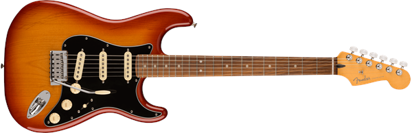 BODY text=#000000 bgColor=#ffffff - Série Player Plus - Corps en aulne - Manche vissé en érable - Touche en pau ferro - Repères "points" Perloïd blanc - Profil du manche: Modern C - Diapason: 648 mm (25,51") - Rayon de la touche: 305 mm (12,01") - Largeur au sillet: 42,8 mm (1,69") - Sillet en os synthétique - 22 frettes Medium Jumbo - 3 micros simple bobinage Player Plus Noiseless Strat - 1 réglage de volume général - 2 réglages de tonalité - Fonction Push/Push sur le deuxième réglage de tonalité permettant d'activer le micro manche en position 1 et 2 du sélecteur - Sélecteur 5 positions - Pickguard 3 plis vert menthe - Vibrato synchronisé 2 points avec pontets style blocs - Mécaniques Deluxe fermées moulées - Accastillage nickel/chrome - Couleur: Siena Sunburst - Livrée en housse Deluxe