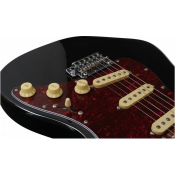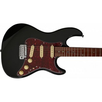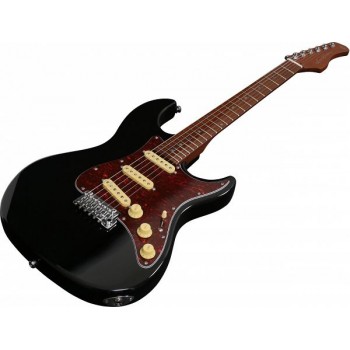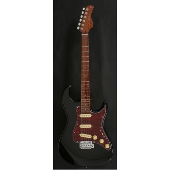 S7 Vintage BK Corps en Aulne, Format: Strato, manche en érable massif torréfié, forme en C, diapason: 25'5”, touche en érable massif torréfié (Radius : 9’5”), Frets: 2,7 medium Jumbo, sillet: 42mm, Binding: Incrustations Ormeau, Capteurs 3 micros simple bobinage SSS S7 , Contrôles : volume et tonalité/Selecteur 5 positions, Chevalet : vibrato S7 2-points (Bloc acier inoxidable), Mécanique: Premium autobloquante (Chrome), Pickguard : Tortoise 3 plis, Finition Noir