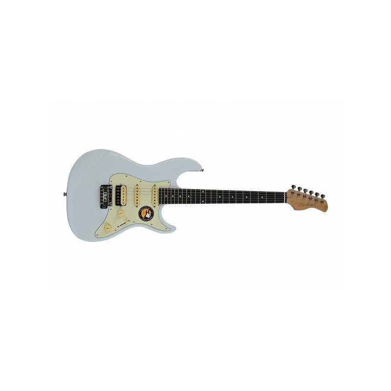 S3 SNB Corps en Acajou, Format: Strato, manche en érable massif, forme en C, diapason: 25'5”, touche en palissandre (radius : 9’5”), incrustation point repère couleur ivoire, Frets: 2,7 medium Jumbo, sillet: 42mm, Capteurs 3 micros (ST pickup set), Contrôles : volume et tonalité/Selecteur 5 positions, Chevalet : vibrato S7 2-points (Bloc acier inoxidable), Mécanique Chromée, Pickguard : Tortoise 3 ply, Finition Sonic Blue