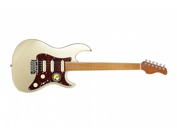 S7 3TS Corps en Aulne d'Amérique du nord, Format: Strato, manche en érable massif torréfié, forme en C, diapason: 25'5”, touche en érable massif torréfié (Radius : 9’5”), Frets: 2,7 medium Jumbo, sillet: 42mm, Binding: Incrustations Ormeau, Capteurs 2 micros simple bobinage HSS S7 manche et milieu, 1 micro double bobinage au chevalet, Contrôles : volume et tonalité/Selecteur 5 positions, Chevalet : vibrato S7 2-points (Bloc acier inoxidable), Mécanique: Premium Autobloquante (Chrome), Pickguard : Nacre blanche, Finition Champagne Gold Metallic