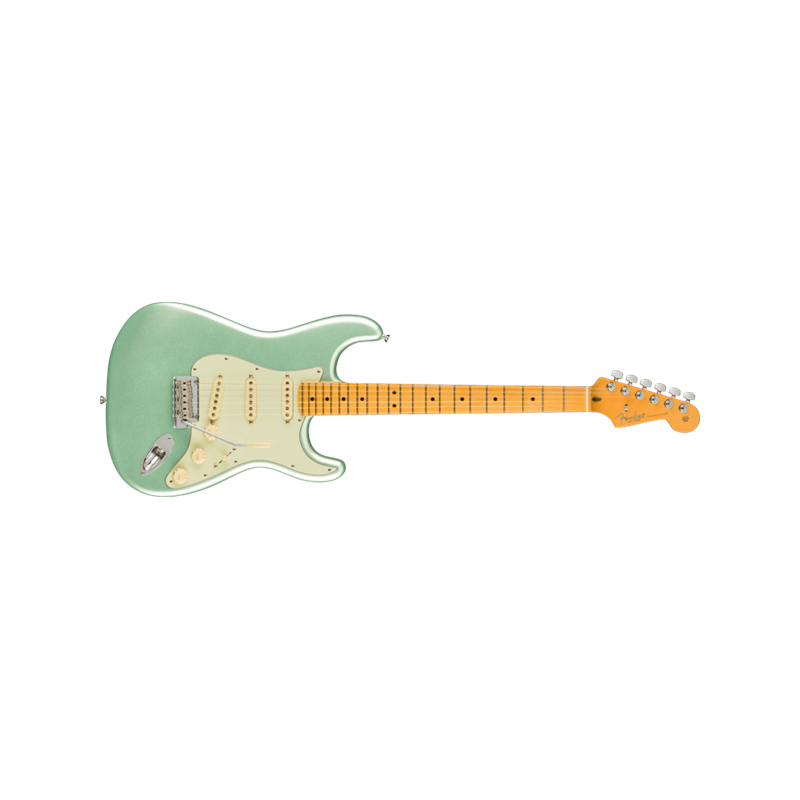 FENDER American Professional II Stratocaster Maple Fingerboard Mystic Surf GreenCorps en aulneManche vissé en érableTouche en érableProfil du manche: Deep CDiapason: 648 mm (25,5")Rayon de la touche: 241 mm (9,5")Largeur au sillet: 42,8 mm (1,69")22 frettes hautes/étroites3 micros simple bobinage V-Mod II1 réglage de volume2 réglages de tonalité Push/Pull (actives le micro manche en position 1 et 2 du sélecteur)Sélecteur 5 positionsVibrato synchronisé 2 points avec pontets pliés en acier, bras inséré et bloc en acier laminé à froidAccastillage nickeléCordes Fender 250L NPS / 009 - 042 Couleur: Mystic Surf GreenLivrée en étuiFabriquée aux USA