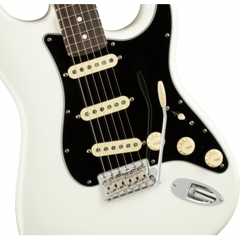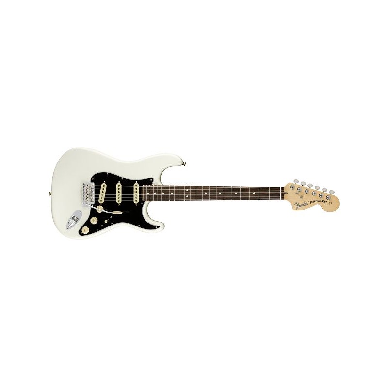 FENDER American Performer Stratocaster Rosewood Fingerboard Arctic WhiteSeries:American PerformerBody Material:AlderBody Finish: Gloss, Satin Polyurethane (302)Neck:Maple, Modern “C”Neck Finish:Satin PolyurethaneFingerboard:Maple or Rosewood,Frets: 22, JumboPosition Inlays:Black Dots (Maple), White Dots (Rosewood)Nut (Material/Width):Synthetic Bone, 1.685” (42.8 mm)Tuning Machines: ClassicGearScale Length:25.5” (648 mm)Bridge:6-Saddle Vintage-Style Synchronized TremoloPickguard:3-Ply Black (380, 384), 3-Ply Mint Green (302, 342)Pickups: Yosemite Single-Coil Stratocaster (Bridge/Middle/Neck)Pickup Switching:5-Position Blade: Position 1. Bridge Pickup (Push/Pull Switch upon Tone 2 adds Neck Pickup in Parallel), Position 2. Bridge andMiddle Pickup (Push/Pull Switch up on Tone 2 adds Neck Pi