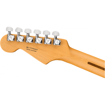 L’American Ultra est notre série de guitares et de basses la plus avancée. Elle s’adresse aux musiciens exigeants qui souhaitent le meilleur en termes de précision, de performances et de son. L’American Ultra Stratocaster HSS présente un profil de manche ”Modern D” unique avec des bords de touche arrondis et un talon de manche effilé qui facilite l’accès aux aigus. Vous profitez ainsi d’un grand confort pour jouer pendant des heures. Une touche au radius compensé de 10”-14” (254 mm-355,6 mm) avec 22 frettes medium-jumbo permet de réaliser aisément des solos rapides et précis, cependant que les micros Ultra Noiseless Hot et le humbucker Ultra Double Tap, associés aux options de câblage avancées, offrent des possibilités sonores infinies – sans aucun souffle. Cet instrument polyvalent et haut de gamme est une véritable source d’inspiration qui propulsera votre jeu vers de nouvelles dimensions.La guitare présente également des mécaniques bloquantes, un accastillage chromé et un sillet de tête en os. Un étui rigide moulé haut de gamme est inclus.Nom du modèleAmerican Ultra Stratocaster HSS, Maple Fingerboard, UltraburstN° du modèle0118022712Country Of OriginUSCouleurUltraburstCorpsAlderFinition du corpsGloss PolyurethaneForme du corpsStratocasterMatériau du mancheMapleFinition du mancheSatin Urethane with Gloss Urethane Headstock FaceForme du mancheModern "D"Diapason25.5" (648 mm)ToucheMapleRadius de touche10" to 14" Compound Radius (254 mm to 355.6 mm)Nombre de frettes22Frets SizeMedium JumboSilletBoneLargeur de sillet1.685" (42.8 mm)Incrustations de toucheBlack Pearloid DotsTruss RodBi-FlexMicro de chevaletUltra Double Tap HumbuckingMicro centralUltra Noiseless Hot StratMicro de mancheUltra Noiseless Hot StratRéglagesMaster Volume (with S-1 Switch), Tone 1. (Neck/Middle Pickups), Tone 2. (Bridge Pickup)Sélécteur de micro5-Position Blade: Position 1. Bridge Pickup Position 2. Bridge and Middle Pickup Position 3. Middle Pickup Position 4. Middle and Neck Pickup Position 5. Neck PickupConfiguration du microHSSChevalet2-Point Deluxe Synchronized Tremolo with Pop-In ArmFinition de l’accastillageNickel/ChromeMécaniquesDeluxe Cast/Sealed Locking (all short posts)Plaque de protection3-Ply Mint GreenBoutons de commandeAged White Soft Touch KnobsCordesFender USA 250L Nickel Plated Steel (.009-.042 Gauges)