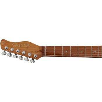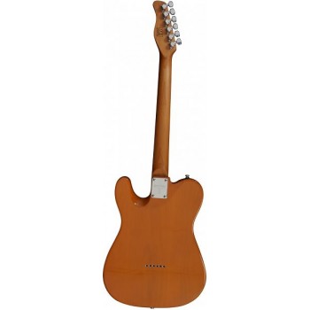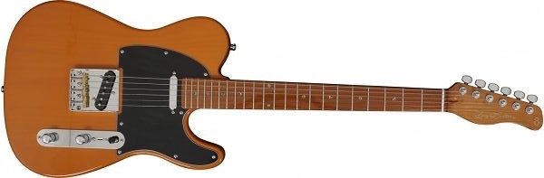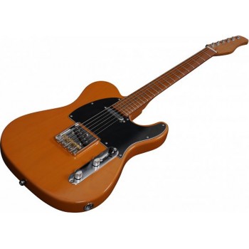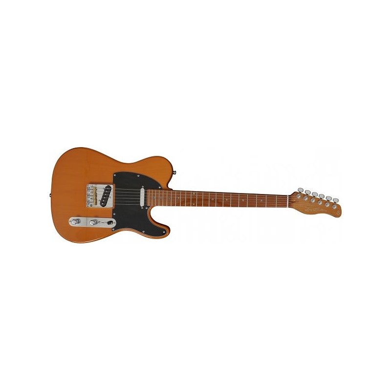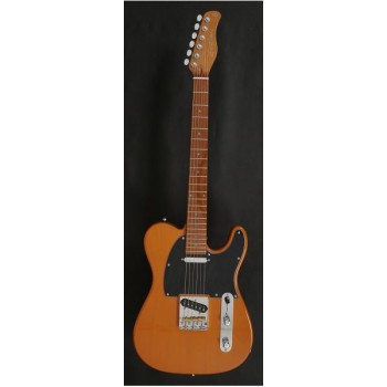T7 BB Corps en Aulne, Format: Tele, manche en érable massif torréfié, forme en C, diapason: 25'5”, touche en érable massif torréfié (Radius : 9’5”), Frets: 2,7 medium Jumbo, sillet: 42mm, Incrustations Ormeau, Capteurs 2 micros simple bobinage SS T7 (Alnico5), Contrôles : volume et tonalité/Selecteur 3 positions, Chevalet : Tele Vintage T7 (Bloc laiton), Mécanique: Premium locking (Chrome), Pickguard : Noir 3 plis, Finition Butterscotch Blonde