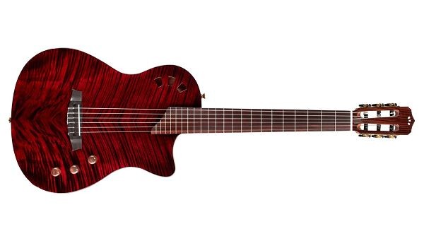Guitare de scène Solid Body Chambrée. Une révolution dans la conception de la guitare nylon, des années de fabrication. La Stage est doté d'une table en épicéa massif coiffée d'un fin placage d'érable flammé et d'un motif de contreventement en épicéa conçu sur mesure. La nouvelle forme de corps ergonomique est sculptée dans de l'acajou massif, conservant un caractère acoustique riche et permettant une épaisseur de corps de seulement 40 mm adaptée à la scène. Le manche de la CORDOBA Stage ayant une touche d'un rayon de 16 " et une largeur de sillet de 48 mm, offre une expérience de jeu confortable et rapide pour tout type de joueur. Une table Edge Burst douce et une finition en polyuréthane brillant confèrent au caractère visuel saisissant de la guitare. Le tout nouveau système Fishman exclusif utilise un système de micro à 3 points combiné à trois commandes : Volume, Bass Response et Blend. Permettant une grande variété de sons acoustiques naturels à n'importe quel volume.La guitare de scène Córdoba est livrée avec un sac de transport sur mesure et prêt pour le voyage. Conçu avec une esthétique utilitaire vintage à l'esprit. Le nylon recyclé de couleur marine offre une toile de fond pour les nombreuses poches conçues pour transporter votre accordeur, vos câbles, votre préampli, vos partitions et tout ce dont vous avez besoin. Les fonctionnalités supplémentaires incluent un système de bandoulière pour un port de style sac à dos et une sangle avant pour faciliter le transport.