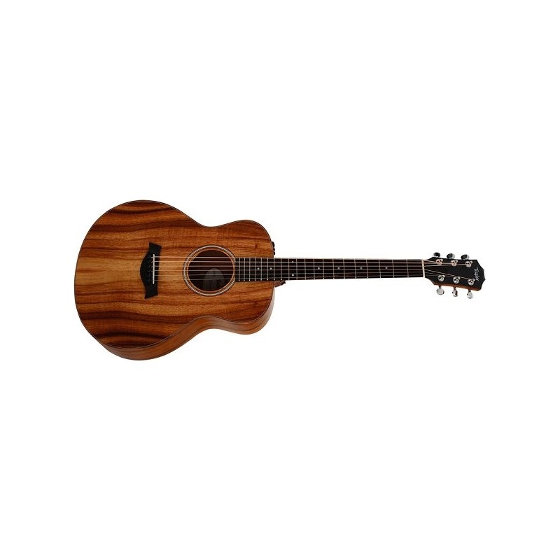 GS Mini, Koa, ES2Small BodyTable en koa massifBarrage en X + Relief RoutFond et éclisses en koaManche en sapeleTouche en ébèneRepères "points"20 frettesDiapason: 597 mmLargeur au sillet: 42,8 mmSillet de tête NuBoneSillet de chevalet en micartaMécaniques Taylor chroméesSystème de micro Taylor ES-BCordes Elixir Phosphor Bronze Medium (185026)Couleur: NaturelLivrée en étui souple TaylorFabriquée au Mexique