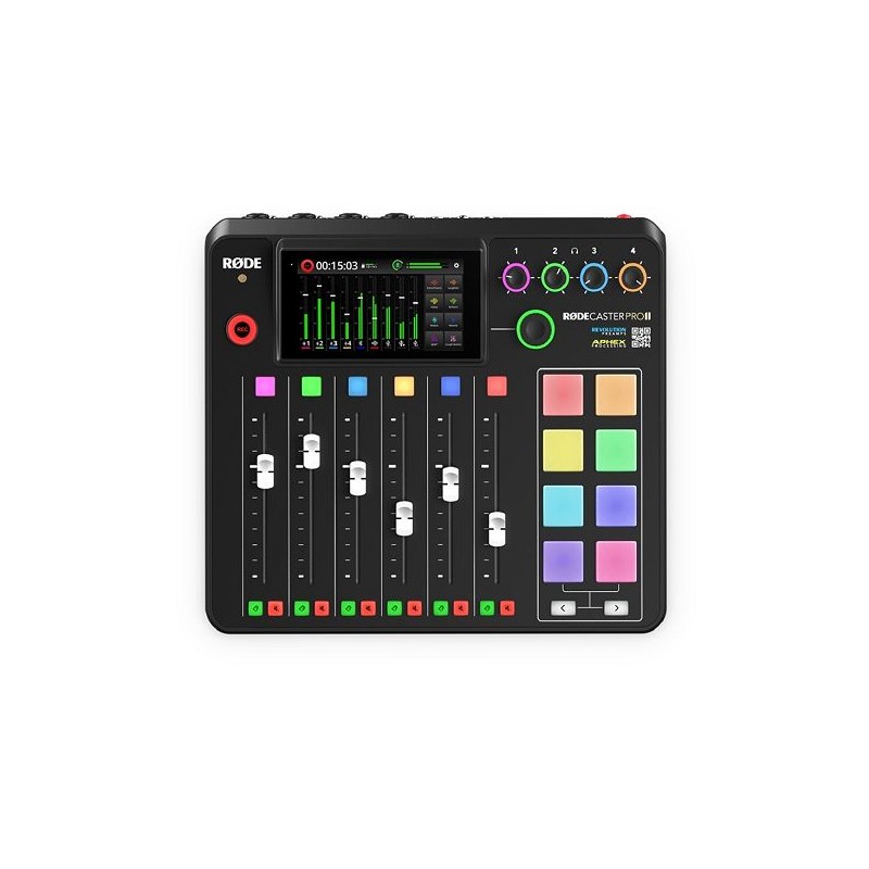 Le RODECaster Pro II est la solution de production audio ultime pour les createurs de contenu, y compris les streamers, les podcasteurs et les musiciens. Combinant des fonctionnalites revolutionnaires avec une qualite sonore superieure, une personnalisation sans fin et une facilite d'utilisation inegalee, le RODECaster Pro II est tout ce dont vous aurez besoin pour enregistrer un son incroyable pour votre contenu. Principales caracteristiques: Studio de production audio entierement integre pour les streamers, les podcasteurs, les musiciens et les createurs de contenu. Revolution Preamps à tres faible bruit et à gain eleve (-131,5 dBV EIN, gain de 76 dB), Quatre entrees combinees Neutrik de haute qualite pour connecter des microphones, des instruments et des appareils de niveau ligne. Neuf canaux assignables Individuellement avec six faders physiques de qualite broadcast et trois faders virtuels. Moteur audio quadricur hautes performances. Traitement audio APHEX de qualite studio et effets integres. Huit pads SMART entierement programmables avec changement de banque. Deux interfaces USB-C pour connecter deux ordinateurs ou appareils mobiles. Connectivite Bluetooth avancee pour une integration d'appels telephoniques de haute qualite, Enregistrement multipiste ou stereo sur une carte microSD, un peripherique de stockage USB ou un ordinateur. Quatre sorties casque haute puissance et sorties ligne symetriques de pouce. ecran tactile haute definition de 5,5 pouces avec retour haptique et encodeur rotatif pour une navigation et un controle faciles. Nouvelles fonctionnalites et ameliorations via des mises à jour regulieres du firmware. Conçu et fabrique dans les installations ultramodernes de RODE à Sydney, en Australie. Finition : noir.