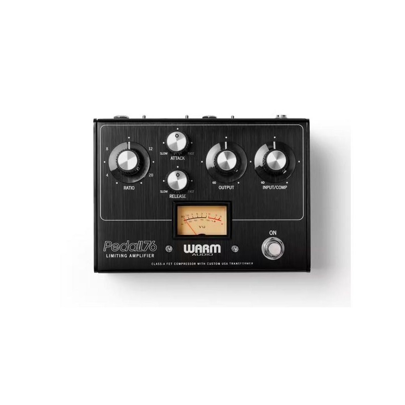 Pédale de compression FET entièrement analogique - Sortie symétrique avec transformateur CineMag USA (enclenché avec alimentation externe) - Commandes de compression classiques de type 76 : Ratio, Attack, Release, Output et Input/Comp - Contrôles supplémentaires en face arrière : potentiomètre de sensibilité d'entrée, interrupteur de masse, sélecteur de niveau Mic/Line et sélecteur de saturation avec boost en sortie DI - Sélecteur de contournement : « True Bypass » (contournement direct de toute électronique) ou « Buffered » (via un circuit de tampon) - VU-mètre de style vintage indiquant la réduction de gain - Chemin de signal analogique 100% discret garantissant un excellent rapport signal-bruit - Alimentation par bloc externe DC 9V ou pile 9V (L'alimentation externe exploite l'augmentation de tension interne via le convertisseur de tension DC-DC) - Dimensions (mm) : 150 x 104 x 48 - Poids : 300 g