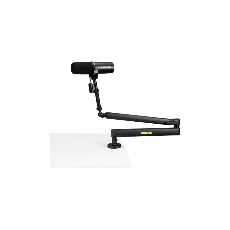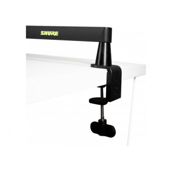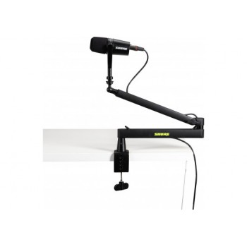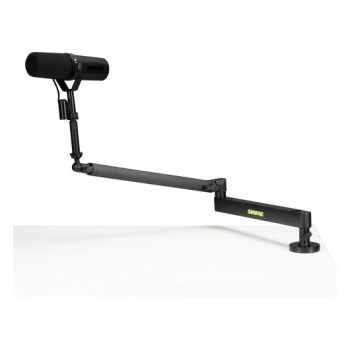 Le Shure Broadcast Desk Series SH-BROADCAST2 est un bras de microphone de bureau haut de gamme, à profil bas, conçu pour rester en dessous de la ligne des épaules. Il offre une polyvalence extrême aux diffuseurs, podcasters et streamers à la recherche d'une solution de prise de son discrète sur le bureau avec une vue dégagée. Le bras comprend deux options de montage : une pince de bureau qui peut être montée sur des surfaces d'une épaisseur maximale de 55 mm, ou une fixation directe qui peut être percée dans votre bureau pour une solution de montage plus permanente. Construit en acier robuste, le bras de la perche offre un réglage horizontal de 360 degrés et un réglage vertical supérieur de 90 degrés. Entièrement déployé, le SH-BROADCAST2 s'étend jusqu'à 33 pouces (838 mm) pour couvrir les plus grandes configurations de bureau. La conception robuste permet de supporter un poids allant jusqu'à 2 kg, et les canaux de câbles magnétiques pratiques montés sur le dessus permettent une gestion propre des câbles, ce qui évite l'encombrement de votre bureau. L'extension filetée offre un dégagement supplémentaire, ce qui en fait un excellent choix pour vos microphones préférés de la série SM7 ou MV7 de Shure.