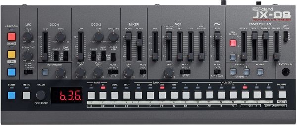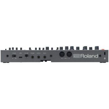 User MemorySound Patch: 256Pattern: 128ControllersRear PanelPower switchVOLUME knobLFO SectionRATE knobDELAY TIME knobWAVE FORM switchDCO-1 SectionLFO sliderTUNE knobRANGE switchWAVE FORM switchDCO-2 SectionLFO sliderTUNE knobFINE TUNE knobRANGE switchWAVE FORM switchCROSS MOD knobDCO-1 ENV knobDCO-2 ENV knobMODE switchMIXER SectionDCO-1 sliderDCO-2 sliderENV knobMODE switchVCF SectionHPF sliderCUTOFF FREQ sliderRES sliderLFO sliderKEY FOLLOW sliderENV knobMODE switchVCA SectionLEVEL sliderMODE switchENVELOPE-1/2 SectionENV SELECT 1, 2 buttonsATTACK sliderDECAY sliderSUSTAIN sliderRELEASE sliderKEY FOLLOW switchPORTAMENTO SectionMODE buttonTIME knobEFFECT SectionCHORUS 1, 2 buttonsREVERB buttonARPEGGIO buttonNOTE buttonSEQ buttonSTART buttonMENU buttonVALUE knobPART A, B buttonsDUAL buttonSPLIT buttonBANK 1(5)--4(8) buttonsNUMBER 1--8 buttonsMANUAL buttonEffectsChorus: 3Delay: 4OverdriveFUZZDriveBit crusherLOFI CompPhaser: 2FilterPitch Shifter: 2Step Sequencer64 steps4 notes (Polyphonic)Display7 segments, 4 characters (LED)ConnectorsEXT CLOCK IN jack: Mono miniature phone typePHONES jack: Stereo miniature phone typeOUTPUT jack: Stereo miniature phone typeMIX IN jack: Stereo miniature phone typeMIDI (IN, OUT) connectorsUSB port: USB Type-C(R) (Audio, MIDI)Power SupplyNi-MH battery (AA, HR6) x 4 or Alkaline battery (AA, LR6) x 4USB bus powerCurrent Draw500 mA (USB bus power)Expected battery life under continuous useNi-MH battery: Approx. 6 hours (When using batteries having a capacity of 1,900 mAh.)* This can vary depending on the specifications of the batteries, capacity of the batteries, and the conditions of use.AccessoriesQuick StartLeaflet "USING THE UNIT SAFELY"Alkaline battery (AA, LR6) x 4Options (sold separately)Keyboard unit: K-25mBoutique Dock: DK-01SIZE AND WEIGHTWidth300 mm11-13/16 inchesDepth128 mm5-1/16 inchesHeight47 mm1-7/8 inchesWeight (including batteries)895 g2 lbs
