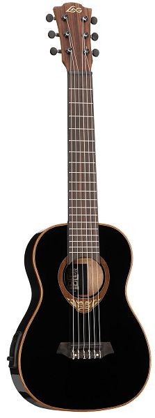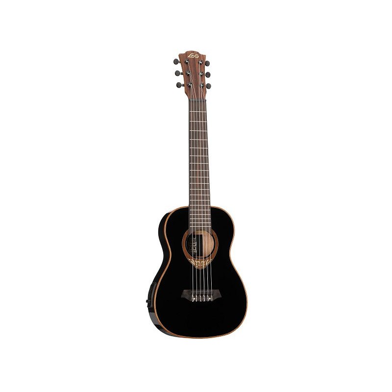 La série Tiki 118 se distingue par une finition noire brillante élégante, soulignée par des bindings en acajou et des incrustations en érable. La rosace arbore un motif inspiré de l’art polynésien traditionnel, affirmant le caractère original et soigné de chaque instrument. Un design raffiné, pensé pour séduire autant visuellement qu’à l’oreille.